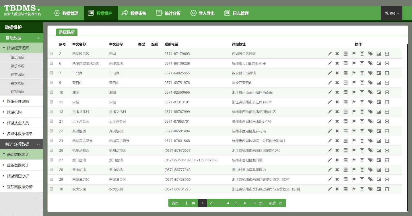 用于各類業(yè)務(wù)數(shù)據(jù)、橫向管理部門和其他涉旅數(shù)據(jù)的管理和維護。