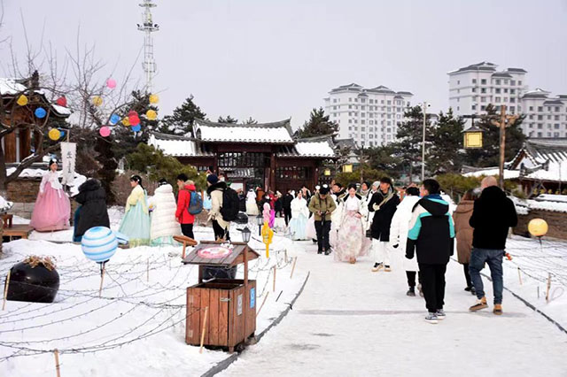 每天,位于延吉市的中國朝鮮民俗園一開門就熱鬧起來,欣賞青瓦飛檐的朝鮮族建筑、體驗(yàn)制作朝鮮族美食……各個(gè)朝鮮族服裝店外排滿了來自四面八方的游客,等著穿上朝鮮族服飾拍照留念。其中一家店鋪的負(fù)責(zé)人介紹,春節(jié)期間,來店里租衣服、拍照打卡的游客特別多,每天不到8點(diǎn)店外就排起了長隊(duì),平均每天都能接待三四百人。