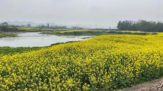 在成都蒲江,一朵花開出鄉(xiāng)村致富新天地的案例不勝枚舉。壽安街道呂石橋村,700余畝油菜花也迎來了盛花期,微風吹過,金浪涌動、花香襲人,把村莊裝扮得十分迷人,前來賞花的游客絡繹不絕,游客如同置身于山水畫中。