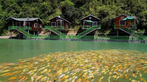 相較常規(guī)農家樂,山水漁莊以秀美溪景風光為特色資源,岸畔規(guī)劃燒烤露營區(qū)、民宿區(qū)、垂釣區(qū)、農家田園果蔬采摘區(qū)、錦鯉觀賞區(qū)、觀景徒步區(qū)、休閑舞臺演唱區(qū)等功能分區(qū),占地3.3公頃多,分兩期開發(fā),目前正陸續(xù)完善內部設施,提高游客的康養(yǎng)度假體驗感。
