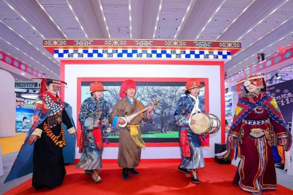 展館內,讓觀眾們駐足停留的除了智能化的交互場景,還有展現各地文化內涵的各類演出。在西藏展區(qū),華麗的藏族服飾一出場就吸引了觀眾的目光,悠揚的果沃琴彈唱將觀眾帶到“神山圣湖”。隨著文化旅游融合發(fā)展,歷史悠久的果沃琴彈唱從村莊、劇院走向街道、景區(qū),讓更多游客感受到西藏文化的魅力。