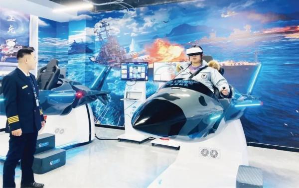 教育基地二樓,只見寬敞明亮的大廳內(nèi)陳列著各種先進的模擬設備,環(huán)繞式的大屏幕,呈現(xiàn)出逼真的飛行場景,讓人仿佛置身于云端之上。這里有裸眼9D飛行影院,160°弧形大屏幕搭配六軸動感平臺,可模擬加速、俯沖、搖晃等動作,加入吹風、噴水、泡泡、雪花等特效,可以帶來視覺、聽覺、觸覺等全方位感官體驗。