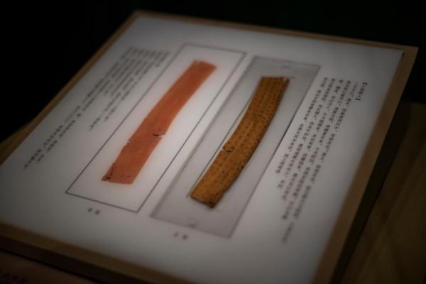 出土于湖北云夢(mèng)的睡虎地秦簡(jiǎn)、睡虎地秦墓“黑夫”家信木牘也一并亮相。竹木無(wú)聲,簡(jiǎn)牘有語(yǔ),他們所記載的珍貴文字資料,直接反映秦代行政管理體制和法制思想,瞬間將觀眾帶回到楚秦征戰(zhàn)、山河一統(tǒng)的歲月。