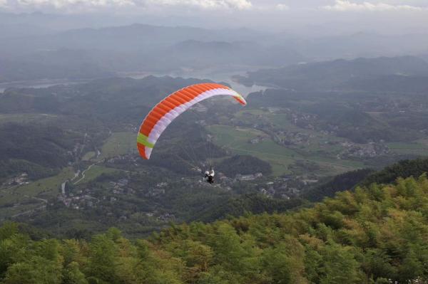 驅(qū)車攀上銅鑼山北坡,直抵海拔680米的黃浦江源滑翔傘基地。云端之上,五彩傘翼掠過竹海碧波,游客的驚呼與歡笑聲交織。通過資源整合,將報(bào)福、章村兩鎮(zhèn)的山水優(yōu)勢融合,建成4個(gè)起飛場、3個(gè)降落場,全年飛行天數(shù)突破300天,打造成為世界一流滑翔傘基地。傘翼劃出的弧線,丈量著片區(qū)化改革的深度。