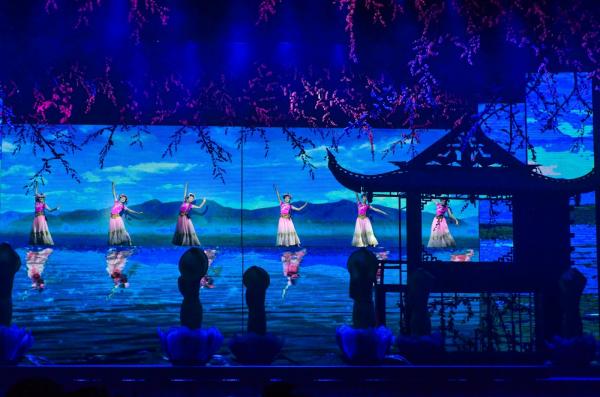 "麗江千古情"大型實(shí)景演出融合了納西族創(chuàng)世史詩(shī)《崇搬圖》、馬幫文化、玉龍第三國(guó)等元素。2024年演出場(chǎng)次達(dá)580場(chǎng),觀眾人數(shù)突破120萬(wàn)人次,收入3.5億元,帶動(dòng)周邊就業(yè)800余人。