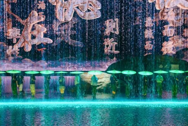《月映武夷》的舞臺(tái)是目前中國(guó)國(guó)內(nèi)跨度最大、面積最大的室內(nèi)高科技多媒體沉浸式水舞臺(tái),通過全電腦機(jī)械舞臺(tái)的精密連接,機(jī)械、水幕、數(shù)控、光影精妙互動(dòng),重構(gòu)水墨丹青的東方美學(xué)意境。未來,《月映武夷》將作為文旅演藝項(xiàng)目駐場(chǎng)演出,在武夷山亮相。