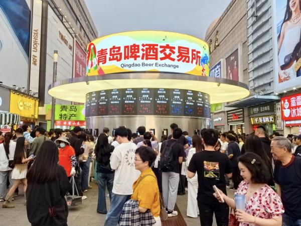 從工業(yè)車間到文旅地標,從節(jié)慶活動到城市符號,青島用啤酒釀造出一套獨特的文旅發(fā)展密碼。當百年啤酒文化與現(xiàn)代旅游體驗相碰撞,這座“中國啤酒之都”的創(chuàng)新實踐,正在改寫文旅產(chǎn)業(yè)的價值公式。金沙灘啤酒城內(nèi),3000平方米的青島啤酒大篷座無虛席,雙舞臺燈光交錯間,侍者托著“三升酒炮”在人群中穿梭——這種盛裝三種風味啤酒的創(chuàng)新容器,已成為第34屆青島國際啤酒節(jié)最暢銷的明星產(chǎn)品。