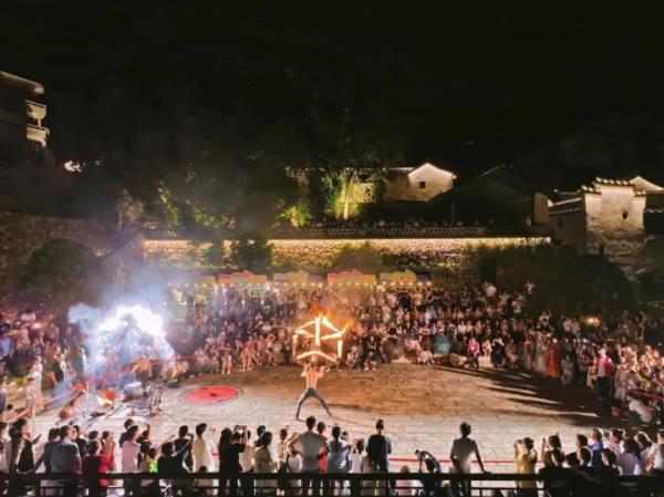2025年7月27日,石浦漁港迎來歷史性時刻——古城二期在“山海夜有戲×漁光煥新周”中煥新開街。這場藝術(shù)盛宴徹底顛覆了傳統(tǒng)古鎮(zhèn)的靜謐印象,上海造夢馬車劇團攜蒸汽朋克劇目《墨家游俠》登陸,3米高蹺俠客身披機械齒輪裝飾,在青石巷陌間化身移動地標(biāo),電子音浪與民樂清音在古墻間碰撞,泡泡音樂派對讓百年老街變身露天迪廳,巨型飛魚空飄裝置游弋夜藝術(shù)展將非遺元素轉(zhuǎn)化為潮流符號。
