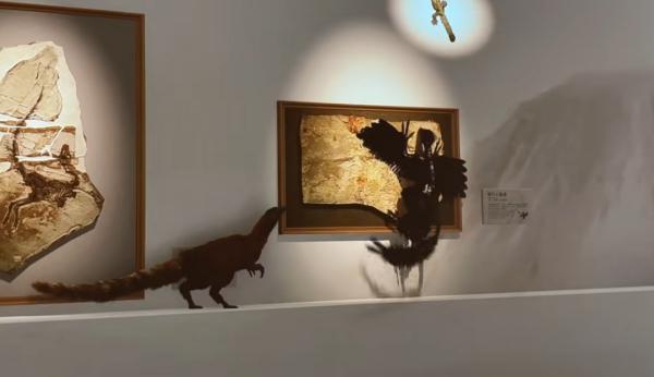 在上海自然博物館內(nèi),“龍吟九州·中國恐龍大展”展廳運用先進技術(shù),讓人們裸眼看見中生代時期不同地貌環(huán)境下緩緩移動的恐龍。小觀眾揮動手勢,就能給不同種類的恐龍投喂食物;觀眾還能見到躍然于化石展品上靈活飛行、爬行的小恐龍投影,仿佛恐龍“復(fù)活”了。