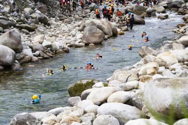 在廣西桂林貓兒山景區(qū),一種被稱為“窩囊漂”的旅游項目人氣頗旺。這一項目區(qū)別于傳統(tǒng)主打驚險刺激的漂流,以慢節(jié)奏、松弛感為調(diào)性,游客可以臥躺在水面,享受漂流樂趣。