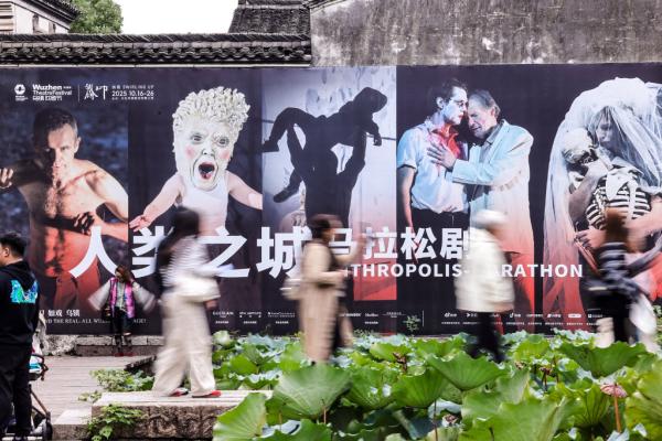 第十二屆烏鎮(zhèn)戲劇節(jié)不僅是中國戲劇的展示,更是一場國際性的文化藝術(shù)交流盛宴。來自世界各地的戲劇作品在此碰撞、交融,架起了一座中外文化交流的橋梁。作為本屆烏鎮(zhèn)戲劇節(jié)的開幕大戲,來自德國漢堡德意志劇院的《人類之城馬拉松劇》由導(dǎo)演卡琳·拜爾與劇作家羅蘭·施梅芬尼耗時五年打磨而成。包括演員、技術(shù)人員、鼓隊、歌隊在內(nèi)的150余名中德兩國劇組成員相聚在烏鎮(zhèn),合力為觀眾呈現(xiàn)了“馬拉松式”的精彩演出。