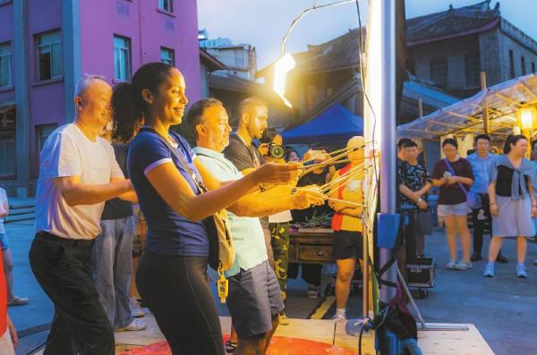 2025年2月5日,收假第一天,由成都市青羊區(qū)文體旅局主辦的“暢玩青羊迎新年·春季文旅消費(fèi)集市”活動(dòng)在寬窄巷子火熱開啟。走進(jìn)寬窄巷子街區(qū)的井巷子,時(shí)光仿佛回到了老成都的市井生活。非遺花車上,非遺傳承人現(xiàn)場展示著傳統(tǒng)蛋殼雕繪技藝、新繁棕編、成都面人等傳統(tǒng)手工藝,精湛的技藝引得游客紛紛駐足欣賞。